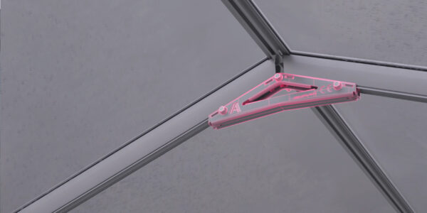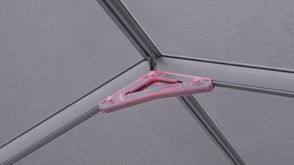 The smart Optinova® roof bar connector forms a strong triangular connection between the glazing bars at the roof of the greenhouse. This distributes wind and snow loads optimally, ensuring maximum stability of the greenhouse roof.